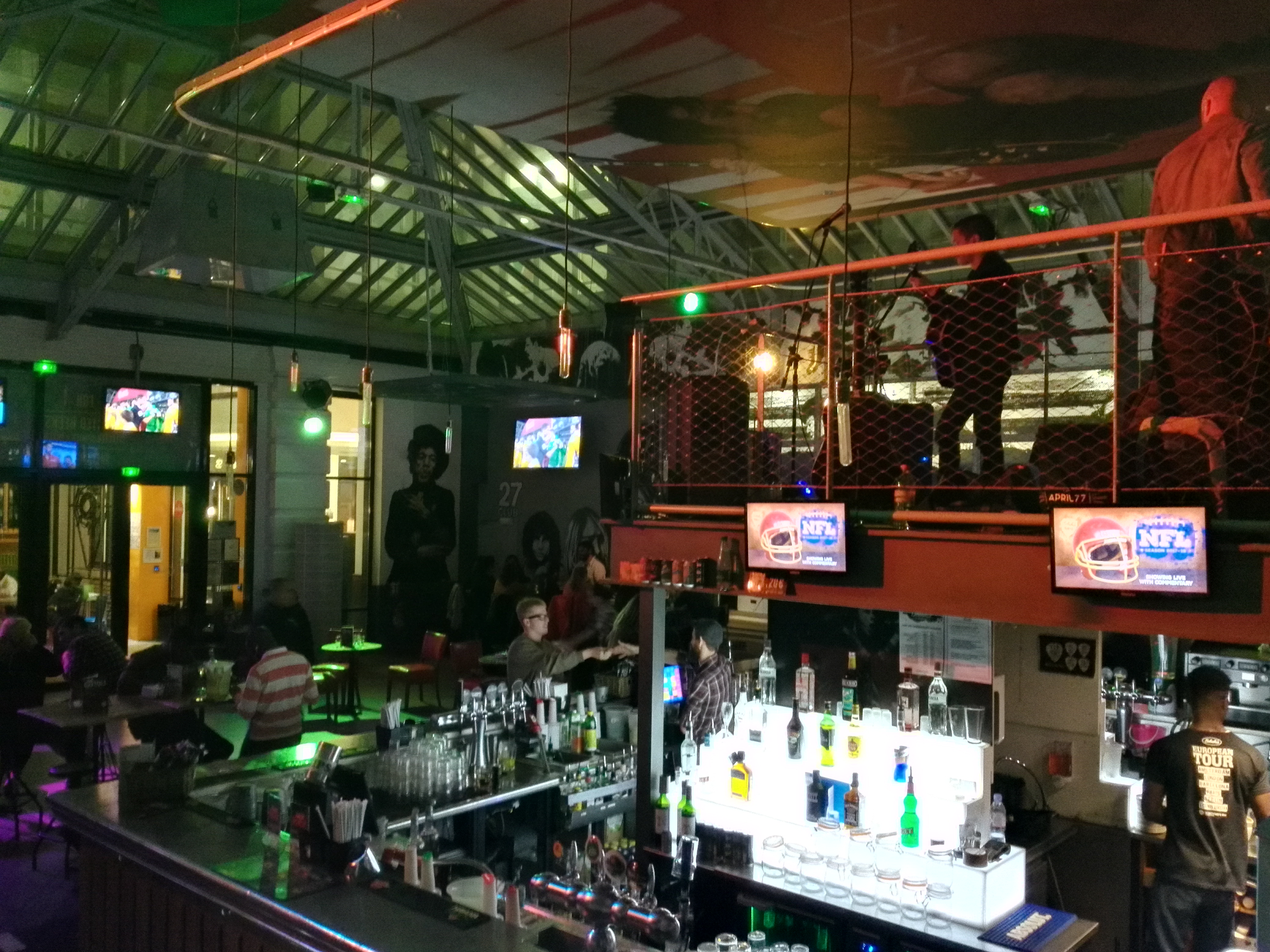 Posté le 02/12/2018 à 21:15" Un bar fait pour faire la fête, style quasi club autour du bar, et un peu moins bruyant dans la salle de sport, où de nombreux écrans diffusent les matchs. La nourriture est bonne, les prix un peu élevés. Les toilettes ont des meubles amusants."
